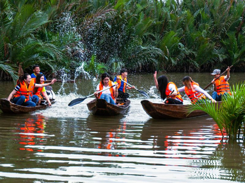 Chèo xuồng qua rạch dừa nước