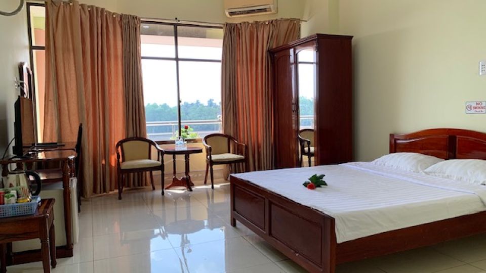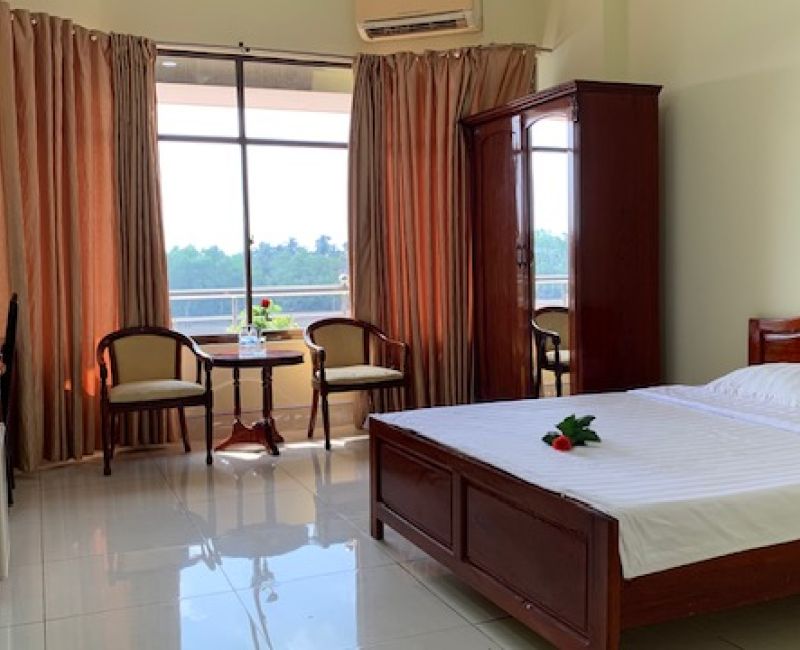 Phòng ở vị trí khu B của khách sạn, có tầm nhìn hướng sông, tận hưởng cảnh sông Bến Tre và khuôn viên cây xanh cổ thụ. Phòng rộng và tiện nghi. Nội thất sang trọng với ghế, bàn trang điểm, kệ dép, tủ quần áo bằng gỗ. Đầy đủ tiện ích như ấm siêu tốc, máy sấy tóc, tủ lạnh, máy nước nóng lạnh. Được cung cấp suối phí 01 chai/ngày. Truyền hình cáp, wifi, thang máy