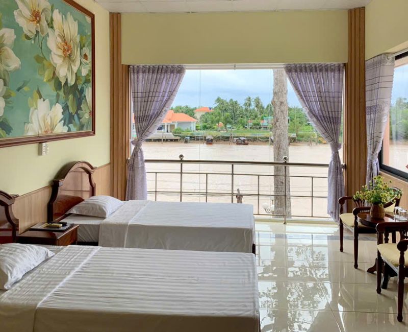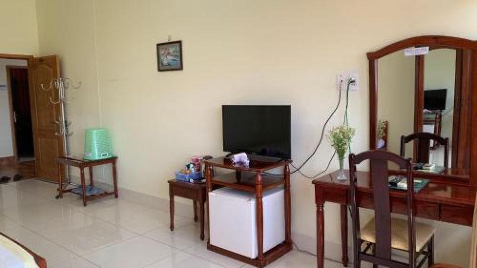 Phòng ở vị trí khu B của khách sạn, view mặt hậu khách sạn. Phòng rộng và tiện nghi. Nội thất sang trọng với ghế, bàn trang điểm, kệ dép, tủ quần áo bằng gỗ. Đầy đủ tiện ích như ấm siêu tốc, máy sấy tóc, tủ lạnh, máy nước nóng lạnh. Được cung cấp suối phí 01 chai/ngày. Truyền hình cáp, wifi, thang máy