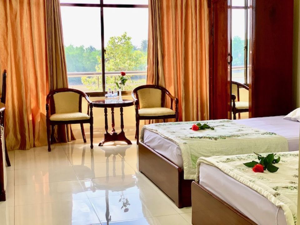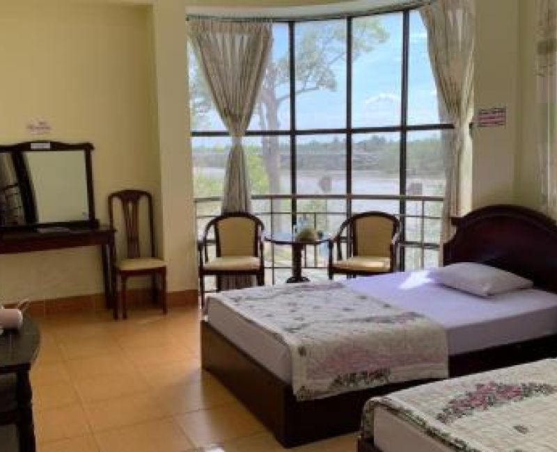 Phòng ở vị trí khu B của khách sạn, có tầm nhìn hướng sông, tận hưởng cảnh sông Bến Tre và khuôn viên cây xanh cổ thụ. Phòng rộng và tiện nghi. Nội thất sang trọng với ghế, bàn trang điểm, kệ dép, tủ quần áo bằng gỗ. Đầy đủ tiện ích như ấm siêu tốc, máy sấy tóc, tủ lạnh, máy nước nóng lạnh. Được cung cấp suối phí 01 chai/ngày. Truyền hình cáp, wifi